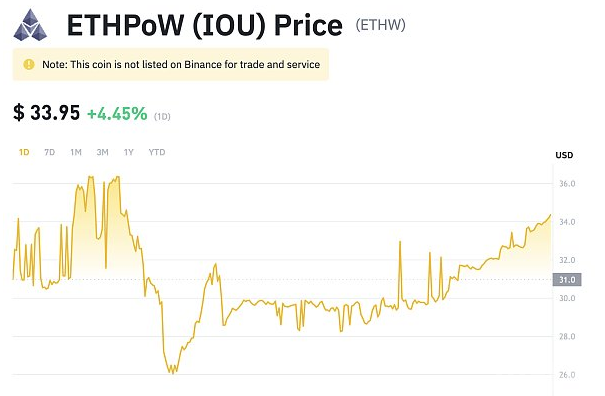 这是现在最大的问题!在撰写本文时,ETHPOW IOU的价格为每个代币 33.95 美元。