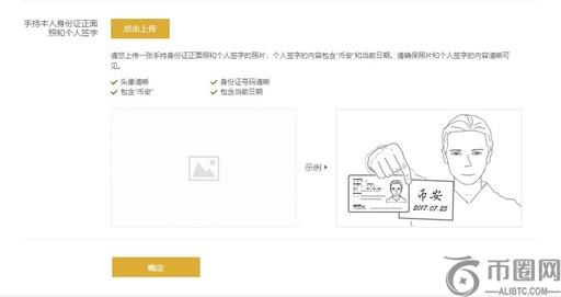 按要求上传本人身份证正面照片、本人身份证背面照片、手持本人身份证正面照和个人签字,点击“确定”进行上传,等待平台认证通过。